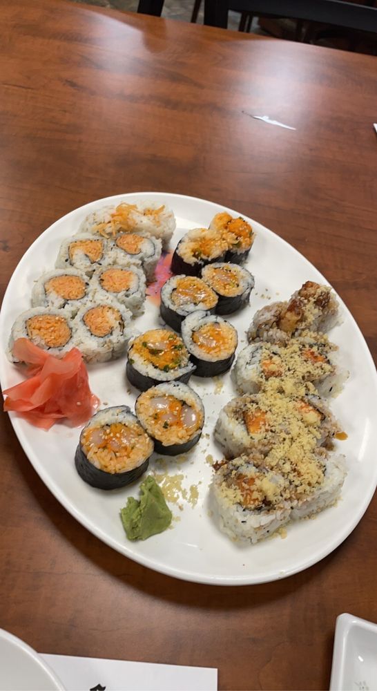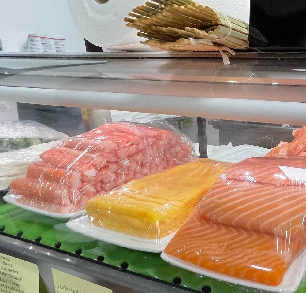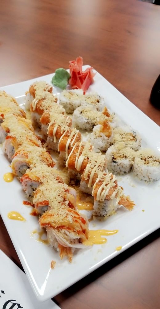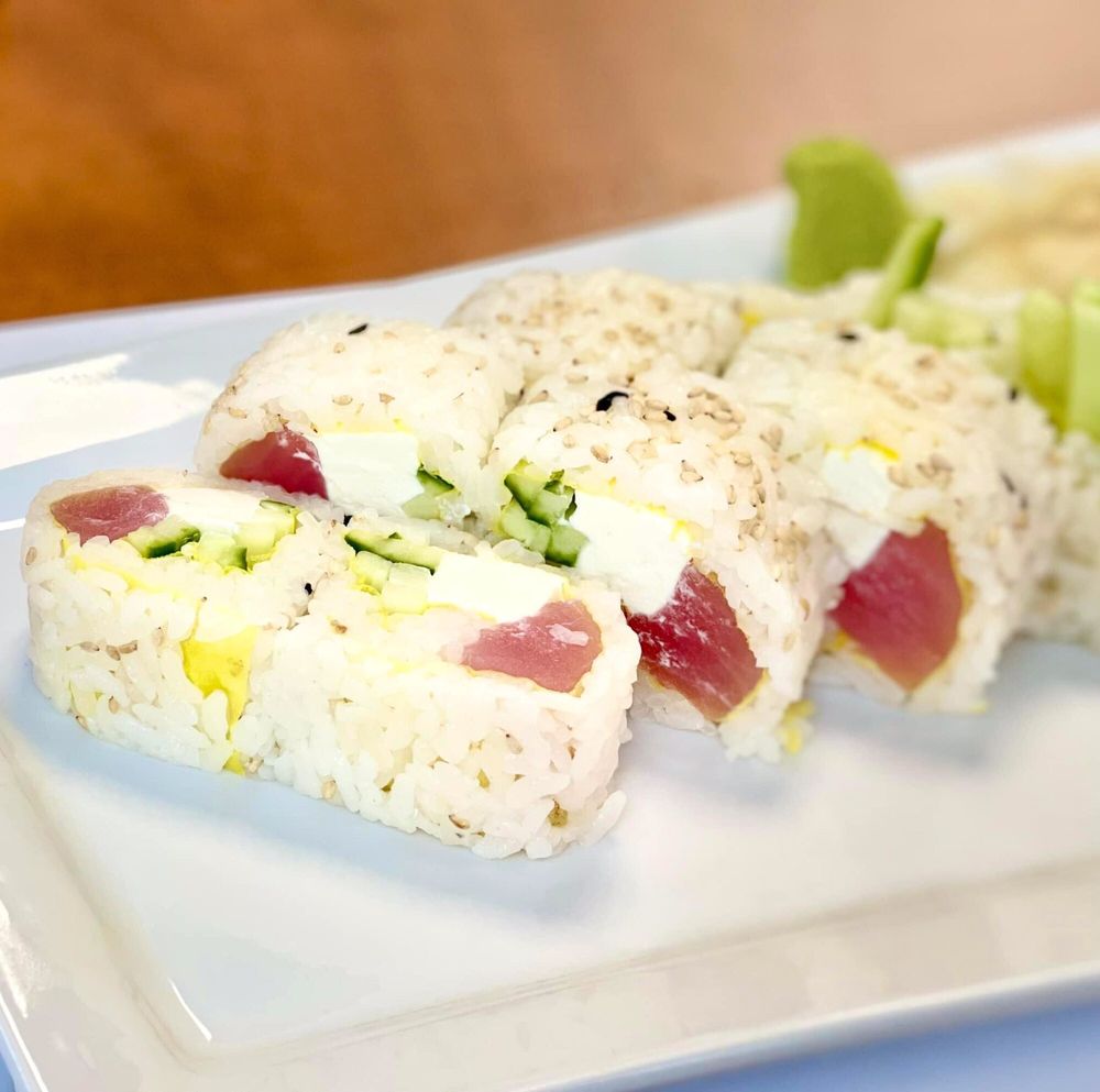 Crab, Cucumber, Avocado inside Tuna, Salmon, Red Snapper, Shrimp, Squid Avocado outside