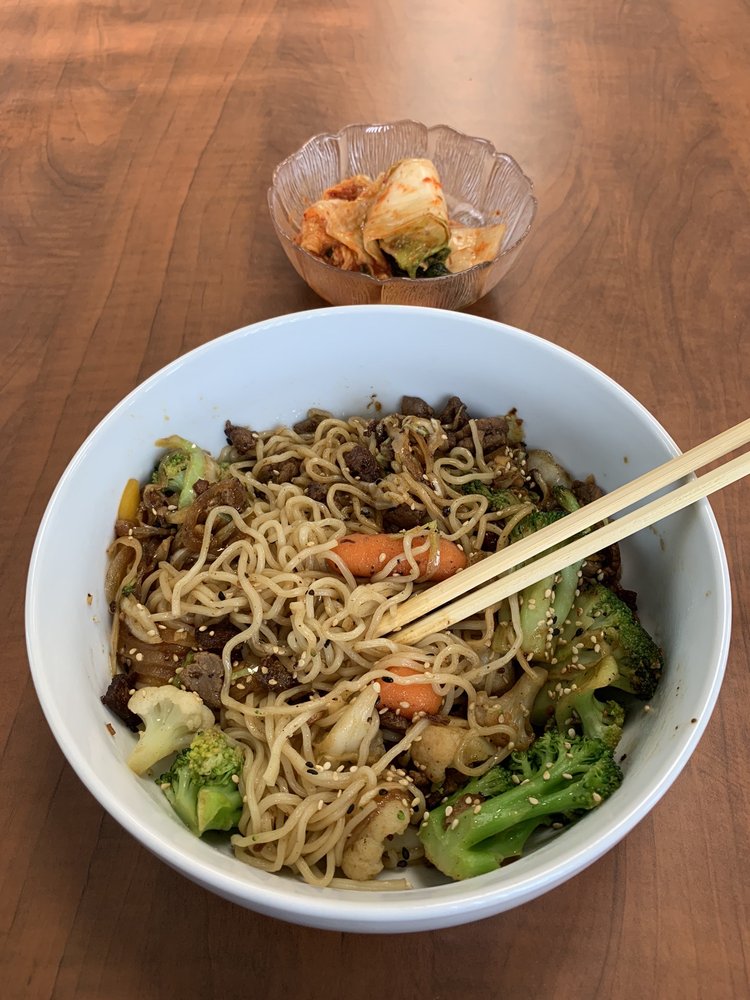 Sauteed noodle with vegetables and chicken or extra vegetables